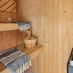 Feriehus 1144 Norby is located 25 minutes' walk from Sondervig Beach and invites guests to enjoy a terrace. This holiday home offers guests a relaxing experience with a hot tub and a sauna.